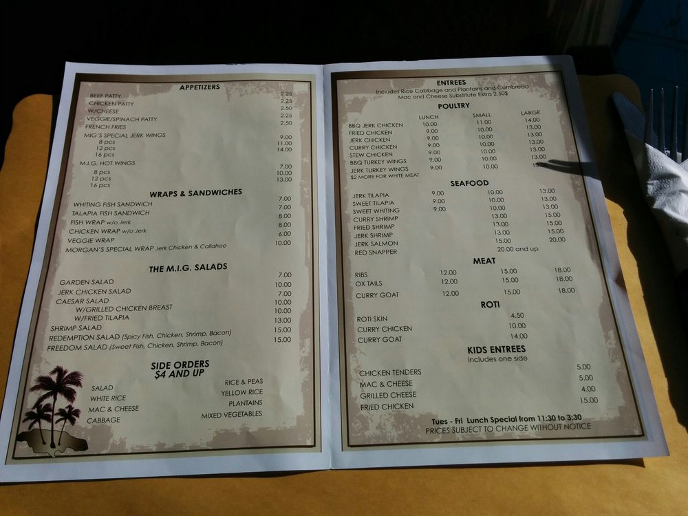 Morgan’s Island Grill Menu